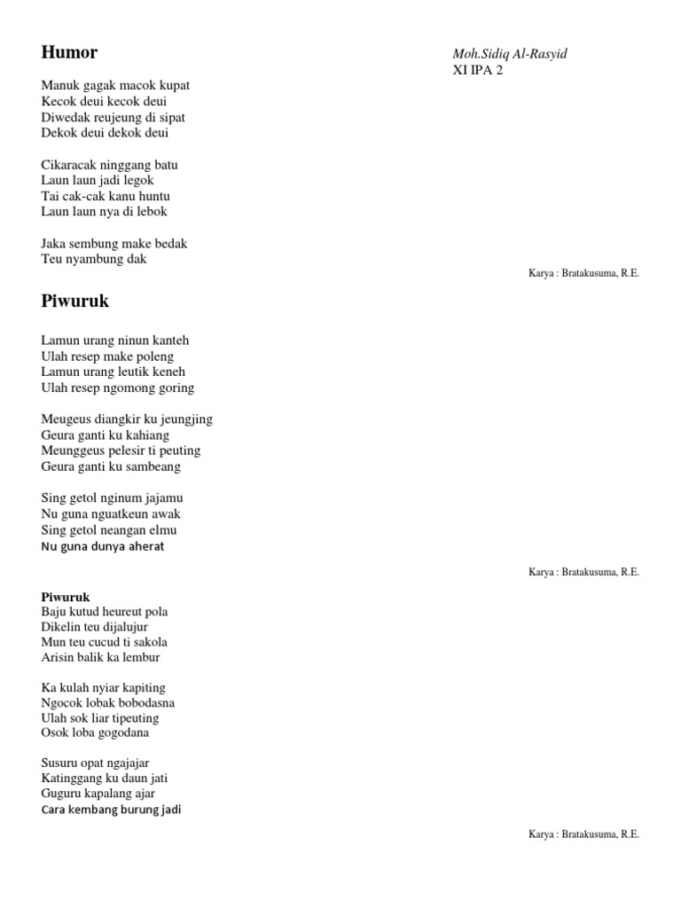 Ridwanmf Thursday November 19 2015 at 110100 PM GMT7. Nah di sini saya akan berbagi contoh rarakitan piwuruk dan terjemahnya. Selamat datang di bahasasundaidPerkenalkan blog ini berisi materi-materi pelajaran bahasa Sunda yang dikemas dalam media audio-visual untuk memberikan kesan belajar yang menyenangkan mudah dipahami dan memberikan banyak informasi baru kepada pengunjung.