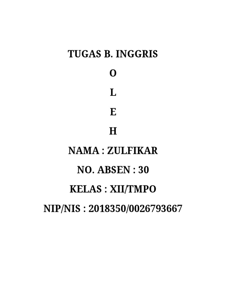 Tugas B Inggris O L E H Nama Zulfikar No Absen 30 Kelas Xii Tmpo Nip Nis 2018350 0026793667