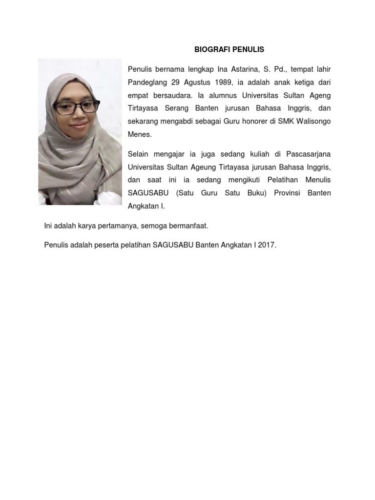 Buku-buku Biografi yang pernah ditulisnya Dr. Buku ini diangkat dari kisah nyata dan diceritakan kembali ke dalam bentuk tulisan. Haiiii gaisssss D Kali ini gue mau kasih contoh Narasi Biodata Penulis.