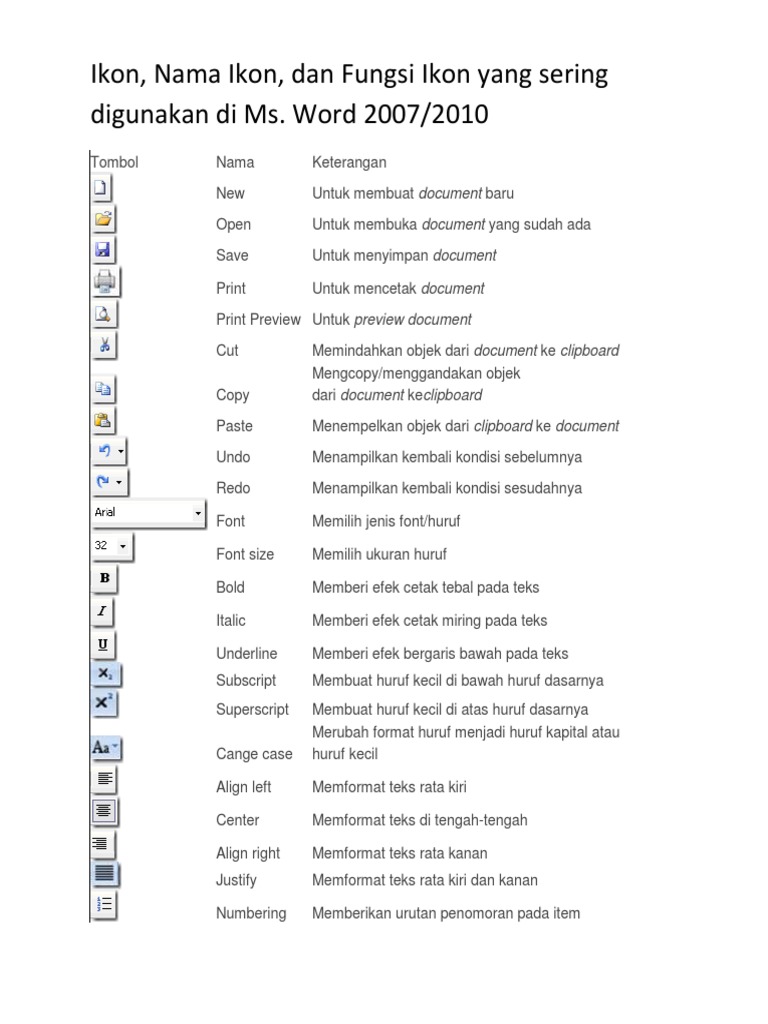 Nama Icon Dan Fungsi Ms Word Yang Sering Digunakan